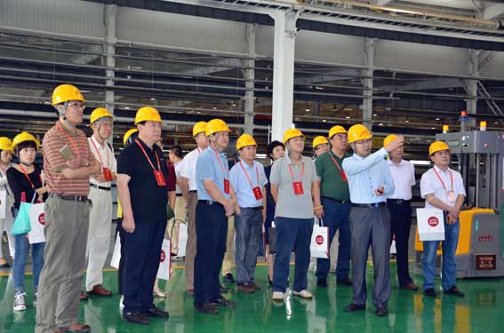 調研組一行先后參觀了智能無人工廠綜合信息管理區、智能立體倉庫、新產品試驗區、自動涂裝生產線、長桿件機器人工作站及小件機器人工作站。
