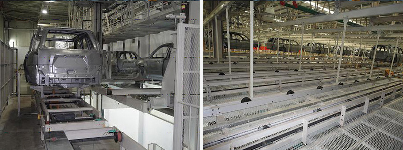 主要用來完成將焊裝調(diào)整線輸送過來的車身輸送到涂裝車間;將焊裝過來的車身進(jìn)行儲(chǔ)存,以保證涂裝車間與焊裝車間產(chǎn)量不一樣而影響涂裝的產(chǎn)能;按車型不同進(jìn)行車型的分類儲(chǔ)存,涂裝車間可以根據(jù)銷售情況進(jìn)行不同車型的生產(chǎn)。