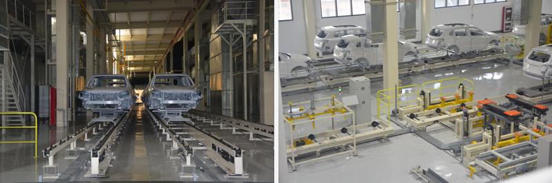 眾泰金壇基地涂裝輸送線,完成車身的涂裝生產任務,該車間承擔中、高檔轎車車身及其備件表面涂漆、防聲、裝飾及防腐任務。本工程范圍包括:前處理懸鏈、地面滑橇輸送線、PVC空中倒置滑橇輸送系統(tǒng)以及與此相關的機械部分。